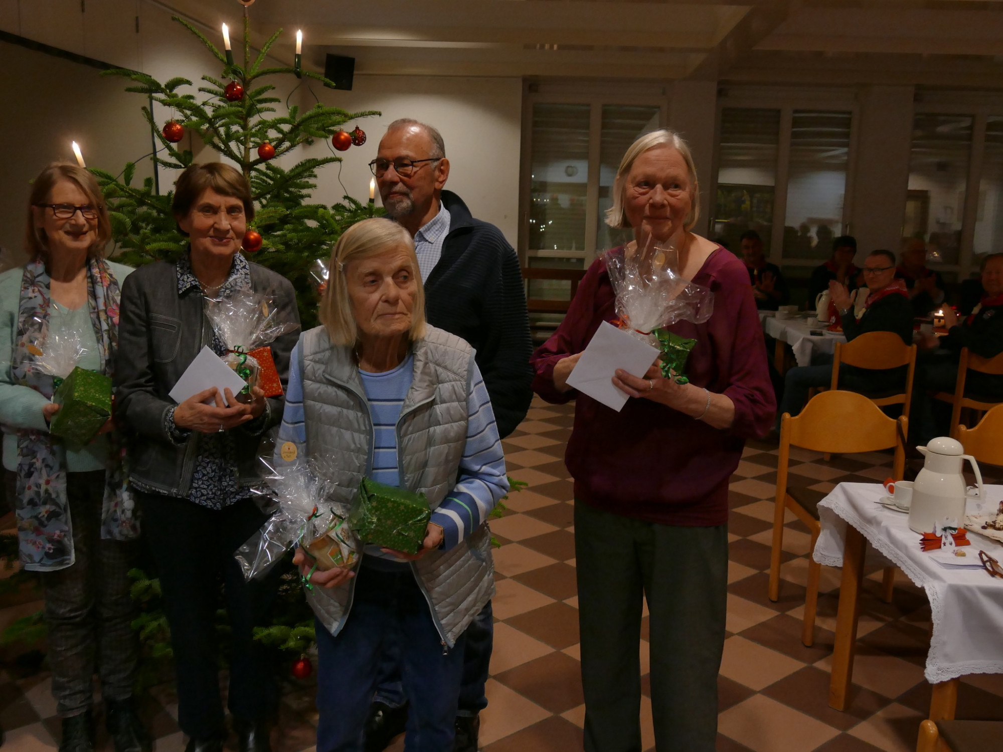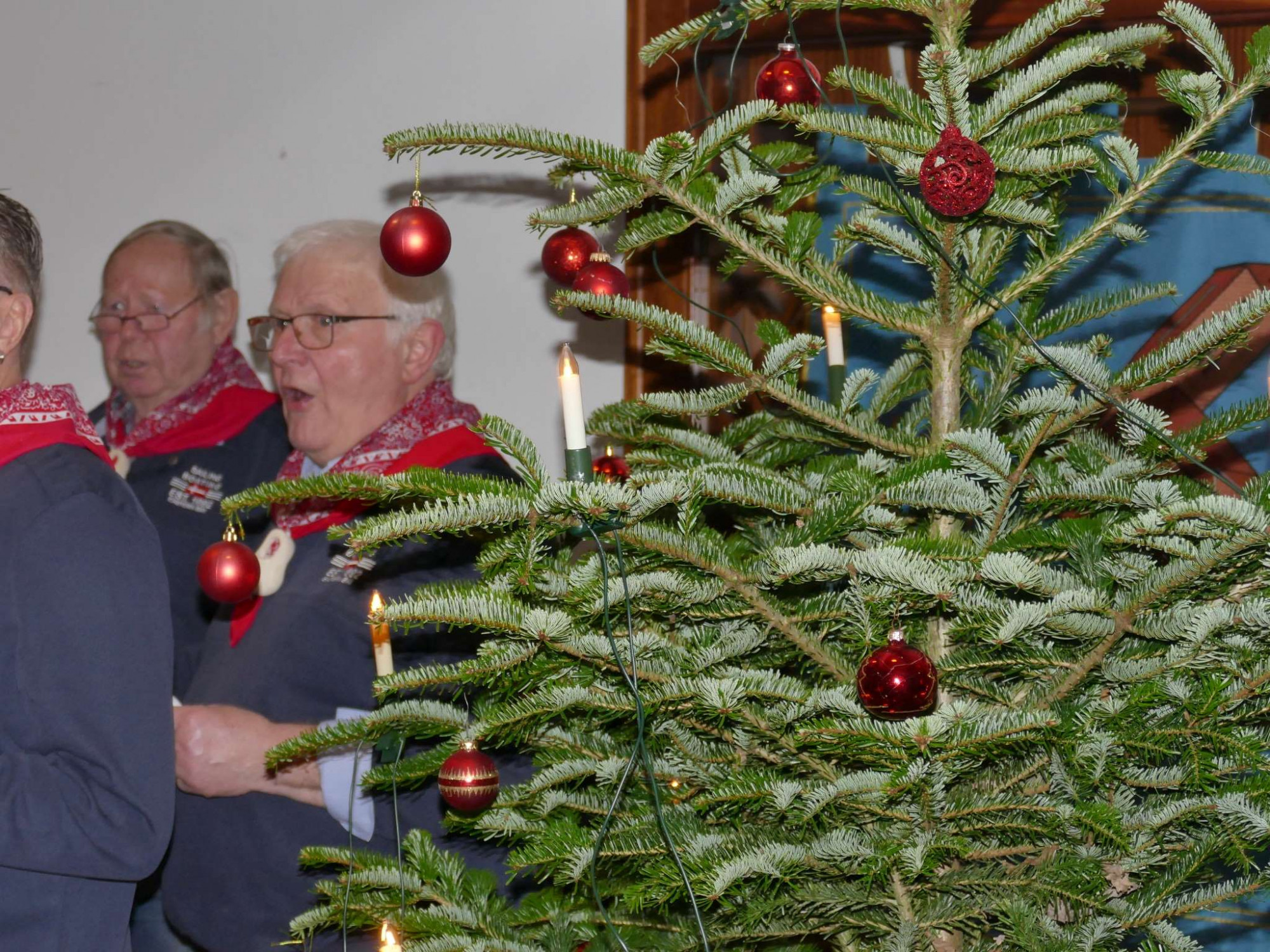 Die Ehrenamtlichen vom Besucherdienst haben alles sehr gut vorbereitet und der Saal war festlich geschmückt. Es gab Kaffee, diverse Torten und Weihnachtsgebäck. Es wurden gemeinsam Weihnachtslieder gesungen, Geschichten vorgelesen und sogar ein Shanty Chor hat für eine adventliche Stimmung gesorgt.